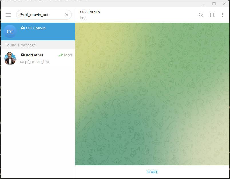 - Une fois cela fait, revenez dans Télégram, et cherchez et tappez sur start.